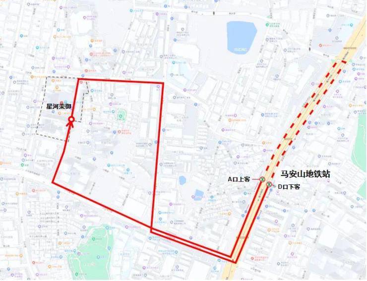 宝安区沙井星河荣御⇋地铁11号线马安山站,其中地铁D口为下客点,A口为上客点。