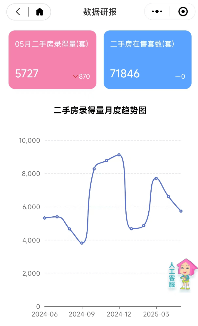 3、挂牌均价:5月二手住宅挂牌均价为6.50万元/㎡,环比小幅下降0.3%