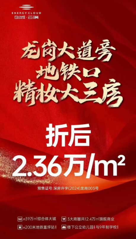 降近6千/㎡!龙岗云璞花园时隔3个再推新,单价约2.36万/㎡起