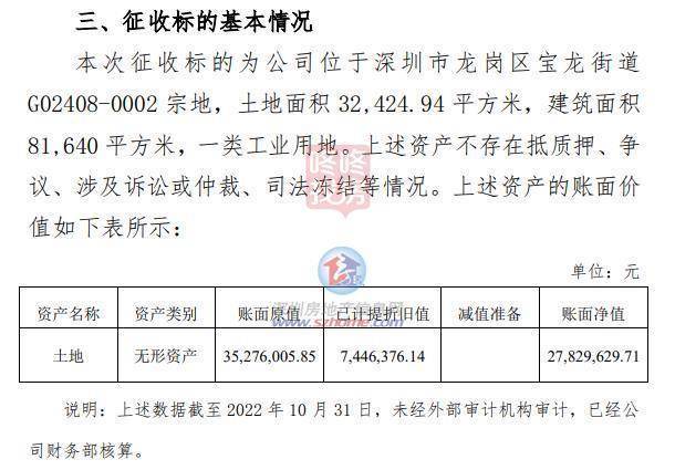 深物业A宝路龙岗一宗土地被征收,获补偿1.97亿元!净利约1.26亿