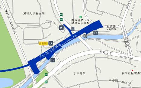 A1、A2出入口:位于丽水路北侧,近深圳广播电影电视集团(卫星地球站)。
