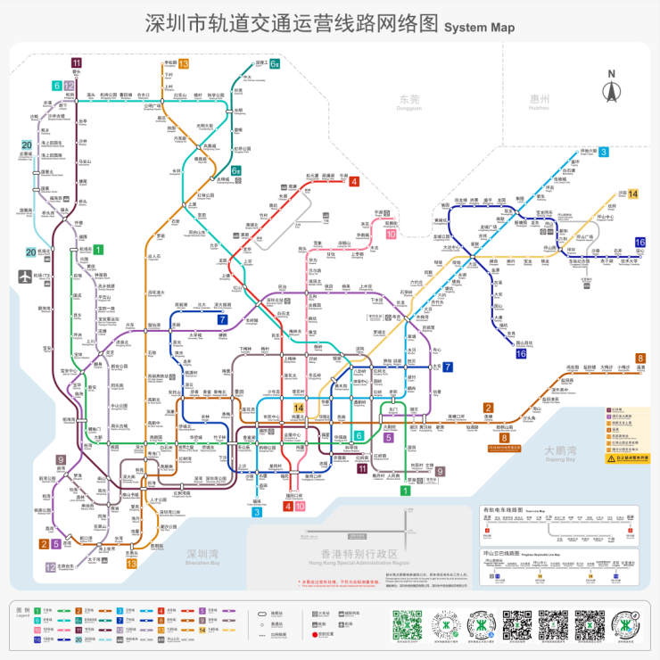 目前深圳地铁运营线路网络图: