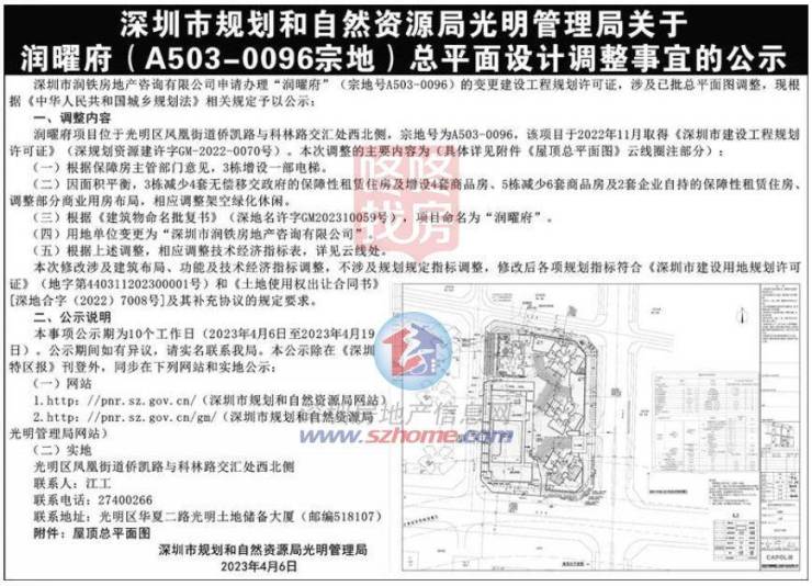 润曜府项目位于光明区风凰街道侨凯路与科林路交汇处西北侧,宗地号为A503-0096,具体修改为:
