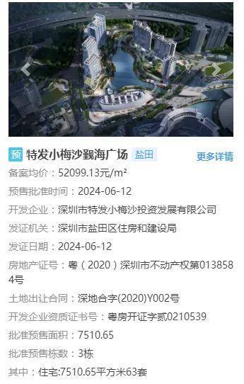 特发小梅沙觐海广场总占地面积约6万㎡,总建筑面积约10.4万㎡,容积率1.75,规划住宅房源约299户,本批首推63套或是试水市场。