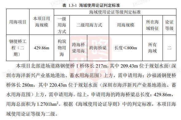 钢便桥全部位于深圳市海洋新兴产业基地项目用海红线范围内,其中部分位于深圳市海洋新兴产业基地项 目港池、蓄水用海上方部分需新增办理桥梁用海。