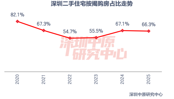 2025年深圳二手住宅按揭购房占比66.3%,较2024年下滑0.8%,较2022、2023年显著提高,但距离高峰期依然有较大差距。