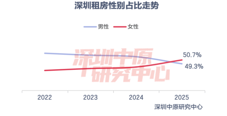 2025年租客中,男性占比49.3%,女性占比50.7%。近几年,女性租客首次超过男性。