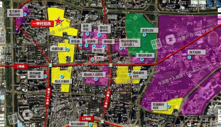 一甲村、常兴新村重点更新单元位于南山区南头街道,分为一甲村片区及常兴新村片区,一甲村位于深南大道、前海路、南新路、南头街围合区域。