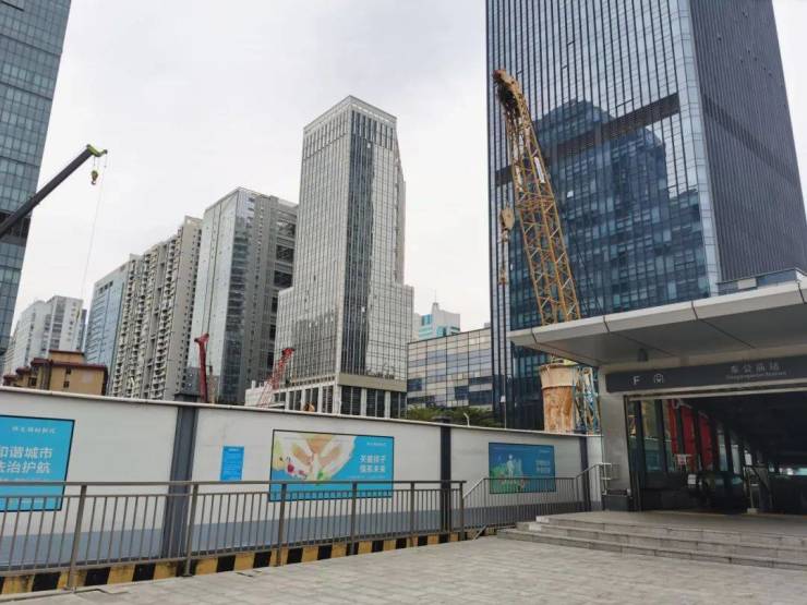 从车公庙地铁F口出来,车公庙泰然工业区第一更新单元二期项目正在施工。这处原属于泰然科技园的位置,一期泰然立城已经建成运营中,二期两个地块即将建成两座约250米、300米摩天楼。