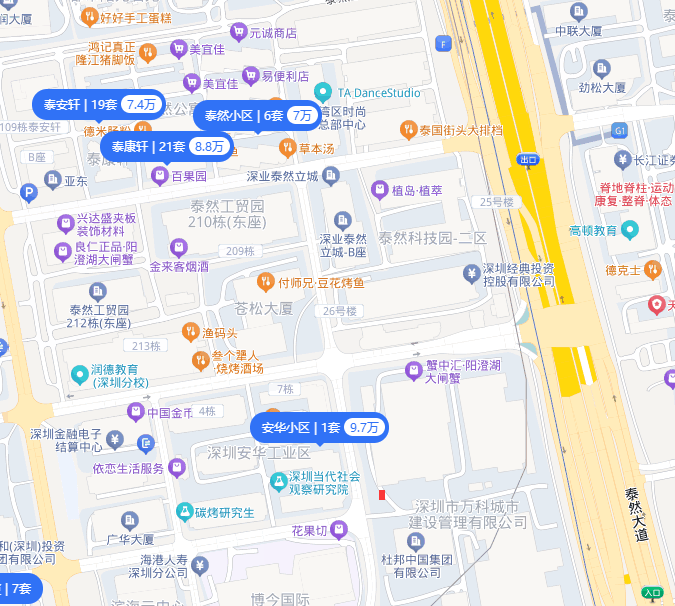 在贝壳找房平台上,片区内有部分挂出二手房源在售,楼龄均超20年,其中泰然小区楼盘超30年,挂牌价在7万/㎡左右,房源以小户型为主,总价低,不过二手房交易市场并不活跃。