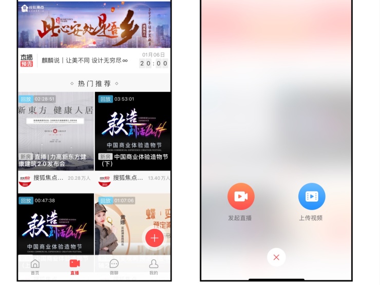 打开焦点好房APP,选择直播,点击“+”,上传视频: