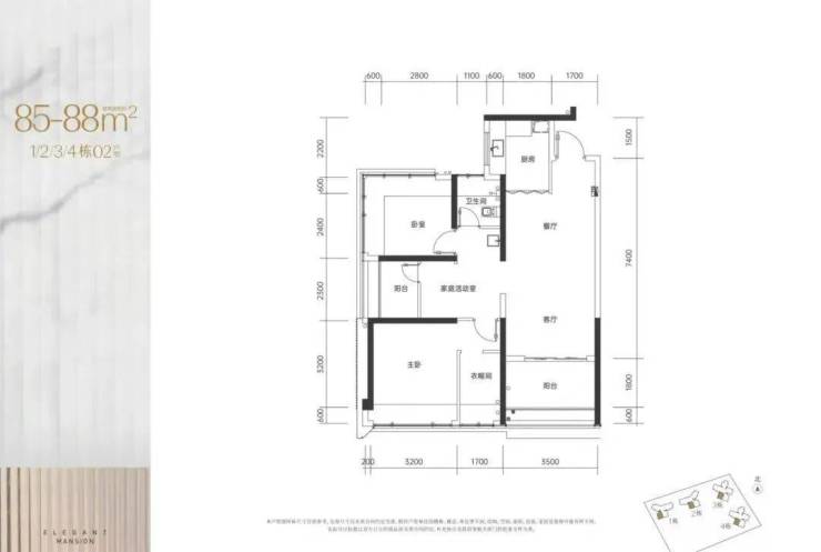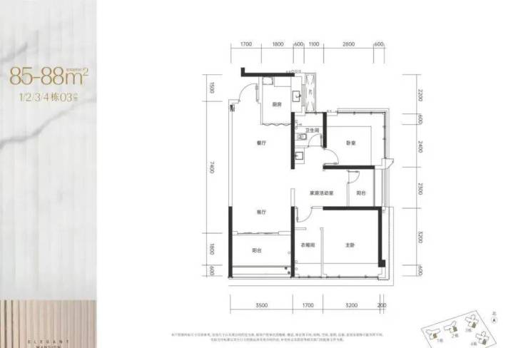 项目共540套住宅房源,户型建面为约80-106㎡的3至4房,户户朝南,全明设计。