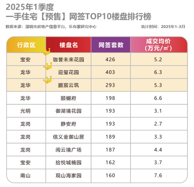 乐有家研究中心统计,一季度新房市场,鸿荣源珈誉未来花园、迎玺花园、鹏宸云筑三盘,网签量分别为426套、403套、293套,领跑市场。(网签数据有一定的延迟性)