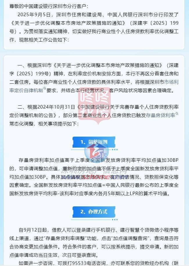继9.5日深圳楼市新政后,工商银行深圳分行、建设银行深圳分行、浦发银行深圳分行、上海银行深圳分行等当地多家银行相继发布关于优化调整商业性个人住房贷款利率定价机制的公告。