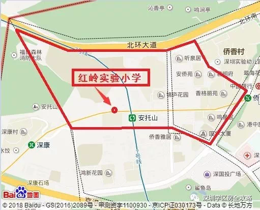 去年征求意见:拟以北环大道以南、安托山一路以东、安托山七路以西、侨香三道以北划为红岭实验小学招生地段。也就意味着原属侨外小学学区的香格丽苑、听泉居、鸣泉居、安侨苑,要划到红岭实验小学。