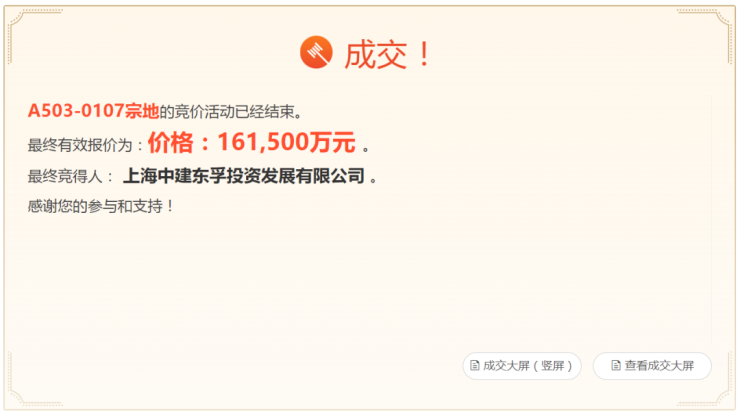 A503-0107宗地是去年8月18日,上海中建东孚(中建八局)以16.15亿竞得的地块,项目建成后,商品房毛坯限售5.03万/㎡,是目前光明限价最高的住宅新房。