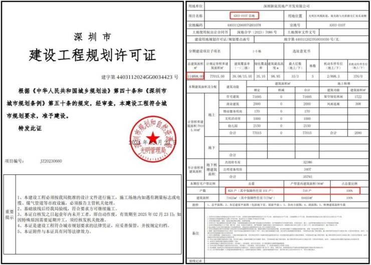 2月28日,深圳市规划和自然资源局光明管理局公布了光明“A503-0107宗地”的《建设工程规划许可证》及总平面图。