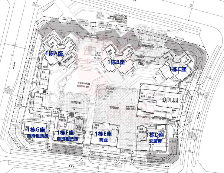 从楼栋分布来看, 可售商品房位于1栋A座(46层)、1栋B座(46层)、1栋C座(47层) ,安居房在1栋D座(49层),全年自持物业位于1栋F座(32层)
