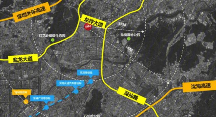自驾方面,项目距离盐龙大道直线距离约500米,经盐龙大道可至深圳外环高速通往光明、宝安,以及龙岗中心、福田等中心地段。