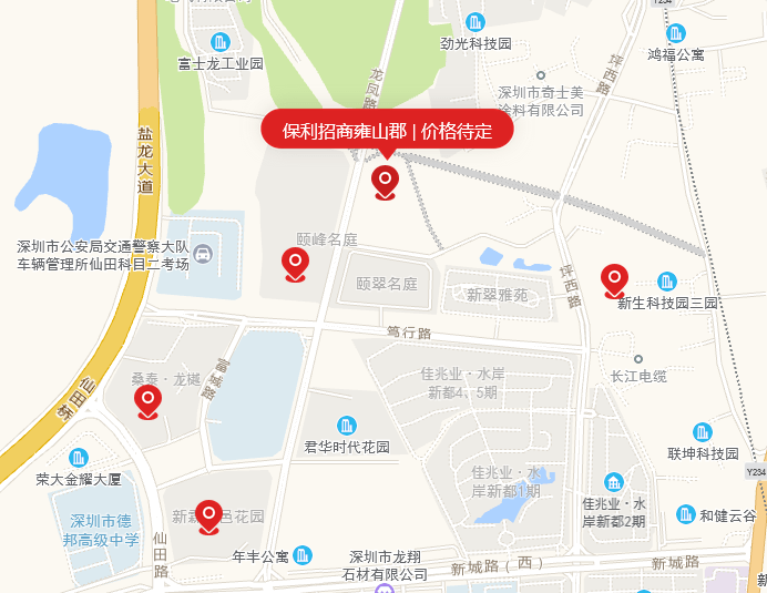 雍山郡花园位于龙岗龙平大道、龙凤路、雅新路、昌新路围合地块,周边有多个新建小区如颐峰名庭、颐翠名庭、颐璟名庭,以及较为成熟的水岸新都等,位于龙岗街道居住比较集中的地段,紧邻坪地。