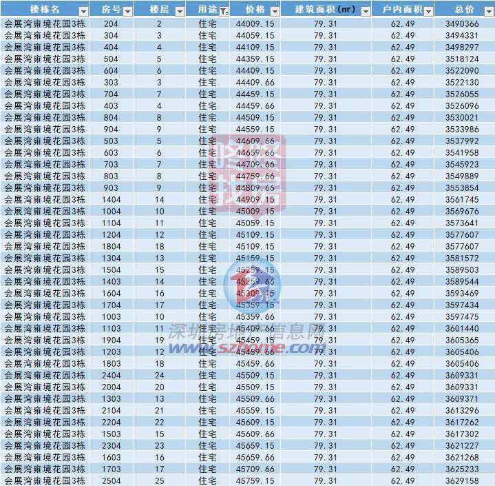 招商会展湾雍境花园位于宝安区沙井街道沙井南环路与展城路交汇处,项目于今年3月份已推出了380套住宅房源(位于4栋、5栋),从住建局公示的房源状态来看仍有42套房源显示期房待售。