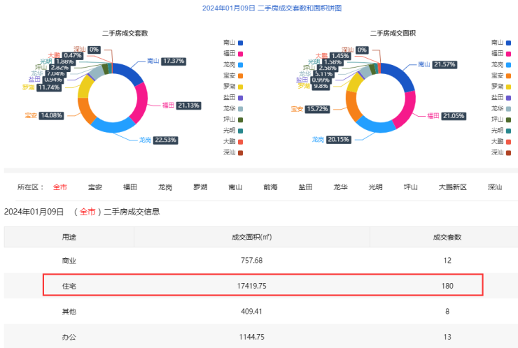 2024年1月9日深圳新房住宅成交36套 二手房住宅成交180套