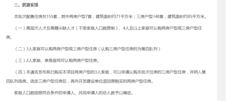 此外,本次申购不同于往常常态化认购的“拼手速”,选房顺序仍在队列的基础上通过摇号决定。队列顺序依次为第一队列、第二队列、第三队列、第四队列(高层次人才、高精尖缺人才可优先选房)。