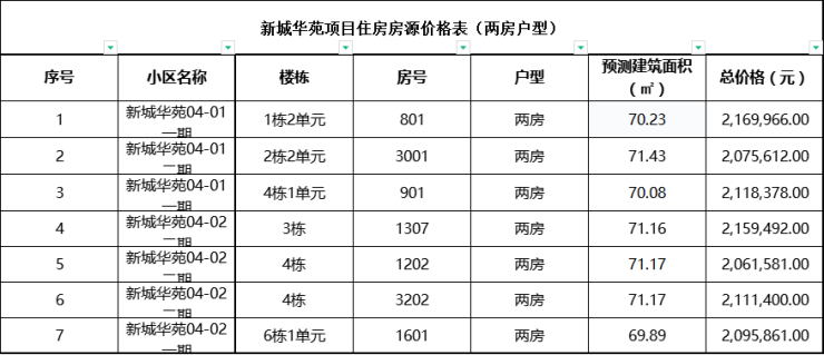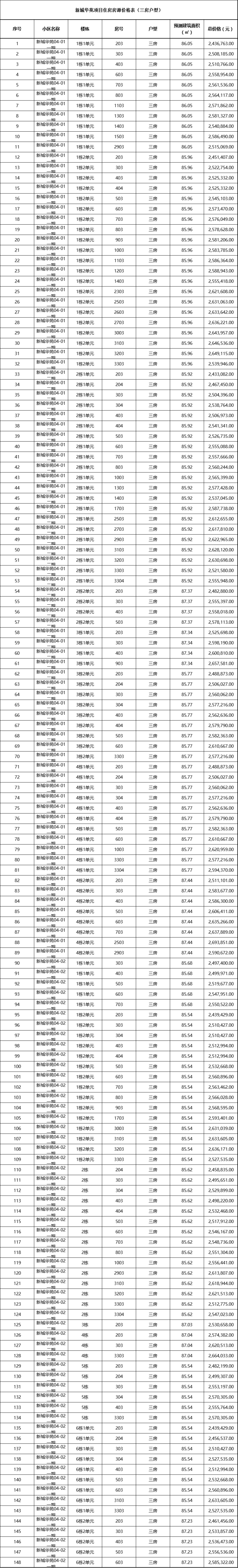 新城华苑本批次配售住房共155套,其中71㎡的两房户型7套;建面约85㎡的三房户型148套,线上申购截止时间到9月11日18点。