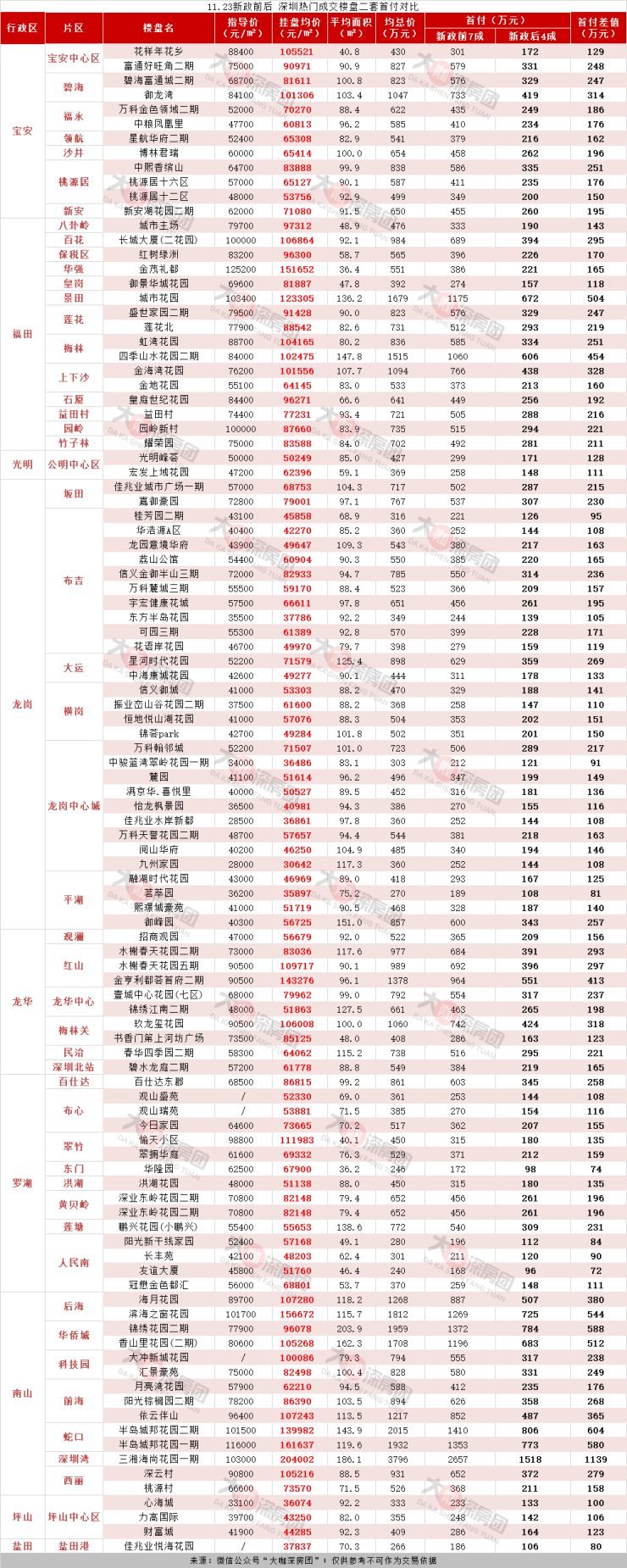 我们选取了10月份深圳全市成交量较高的,104个热门小区最新挂盘价。