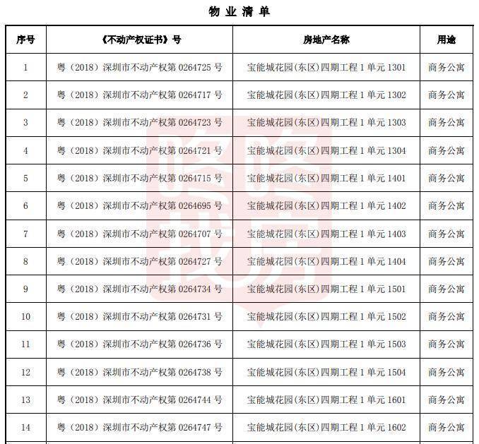 列出的这484套物业清单,为宝能城(东区)4期商务公寓、4期酒店、3期住宅。