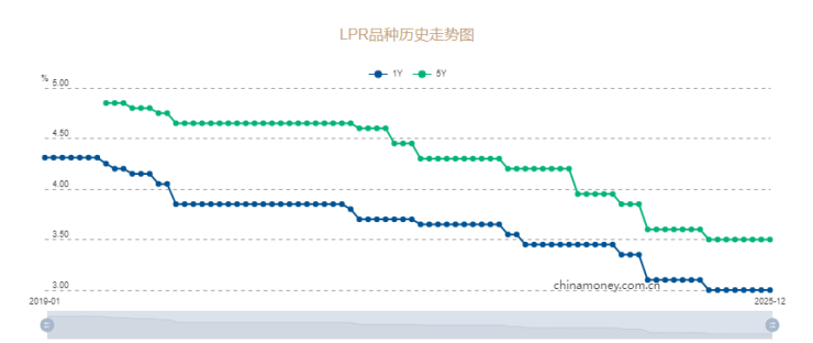 中国人民银行授权全国银行间同业拆借中心公布,2025年12月22日贷款市场报价利率(LPR)为:1年期LPR为3.0%,5年期以上LPR为3.5%,两个期限LPR均与上月持平。