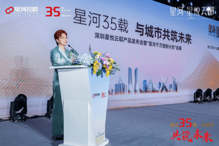 星河控股集团副董事长姚惠琼女士在致辞中谈到:星河35年以来的稳健前行、一路高歌,离不开媒体朋友们、业主老板、合作伙伴的支持和认可!星河一直想业主所想,秉承“诚信壮星河,品牌献祖国”的初心,持续为大家打造出更好的精品!