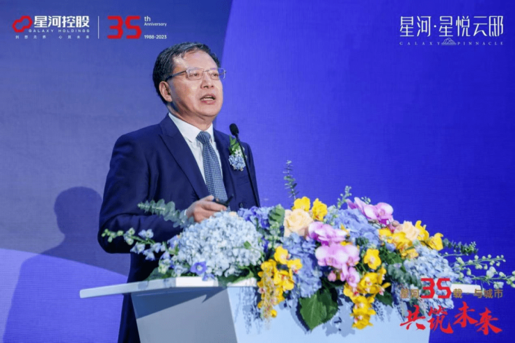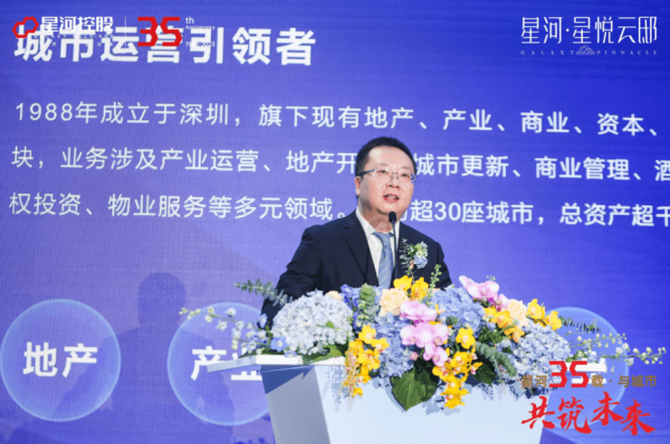 星河控股集团总裁助理周为先生在致辞中谈到,35年来,星河在“先做稳 再做强”的经营理念指导下,坚持稳健经营,高质量发展,连年固守“三道红线”全绿、连续三年保持AAA主体信用评级。面向新的时代,星河将以“城市运营引领者”为使命,开启高水平创新、高质量发展的新征程!