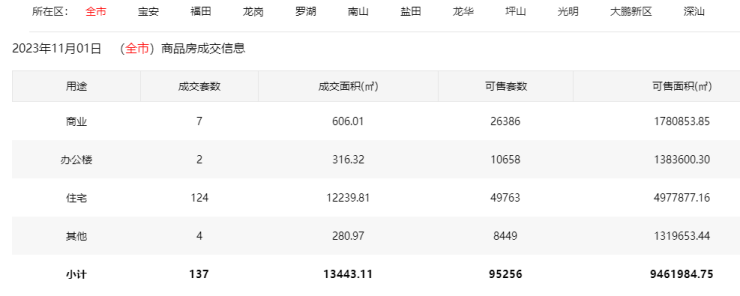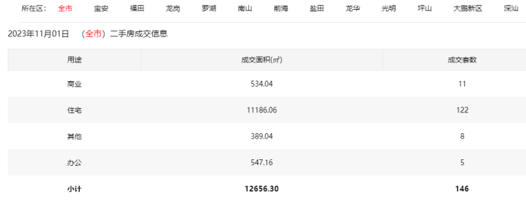 11月1日深圳新房住宅网签124套 二手房住宅网签122套