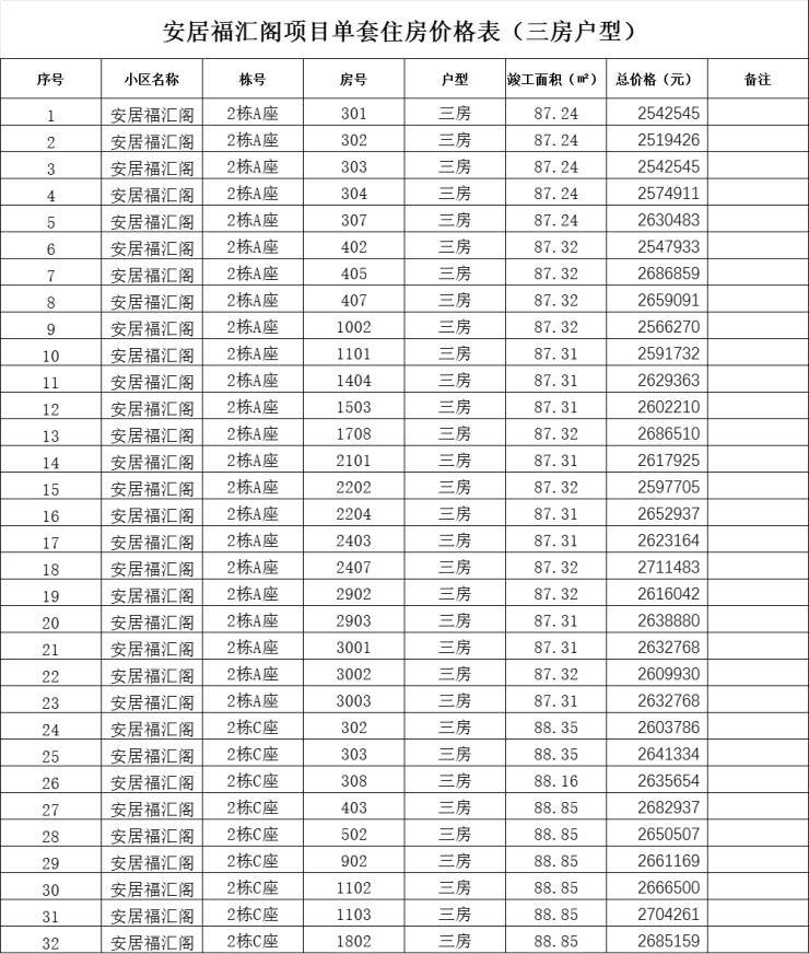户型:建面约70的两房(15套),建面约约87-89㎡的三房(32套);