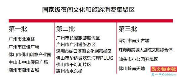 近日,文化和旅游部公布了第三批国家级夜间文化和旅游消费集聚区名单,其中,位于广东省的深圳市南头古城、珠海海韵城大剧院文旅综合体、汕头市小公园开埠区、佛山岭南天地4家单位入选。