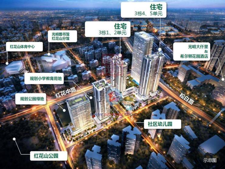 满京华金硕华府(原满京华狮山项目)位于光明中心区,是一个近百万方的超大体量综合体,居住总量超48万㎡,包含有高端住宅、办公、商业、配套等;与科学公园隔路相望,周边紧邻科技创新文化集群,如科学岛、科技馆新馆、西方美术馆等,是光明科学环廊核心地带之一。