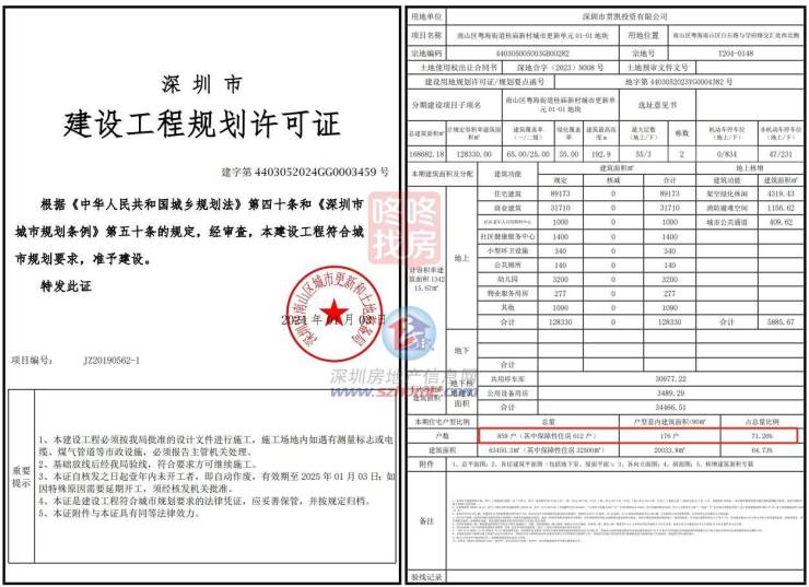 近日,南山区粤海街道桂庙新村城市更新单元01-01地块项目建设工程规划许可证及总平面图的公告。