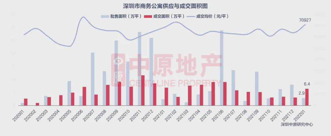 公寓市场逆势火爆:网签数据显示,1月全市公寓共成交550套,环比↑15.1%;成交面积为6.4万平,环比↑108.2%,公寓成交均价上涨11.3%至70927元/平。
