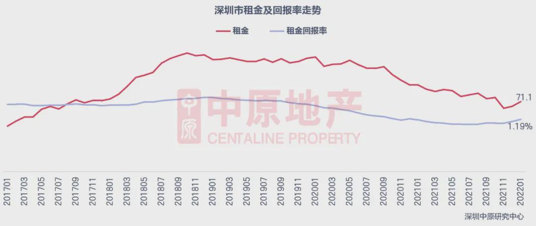 根据深圳中原研究中心监测显示,1全市住宅租金为71.1元/平·月,环比上升1.0%。