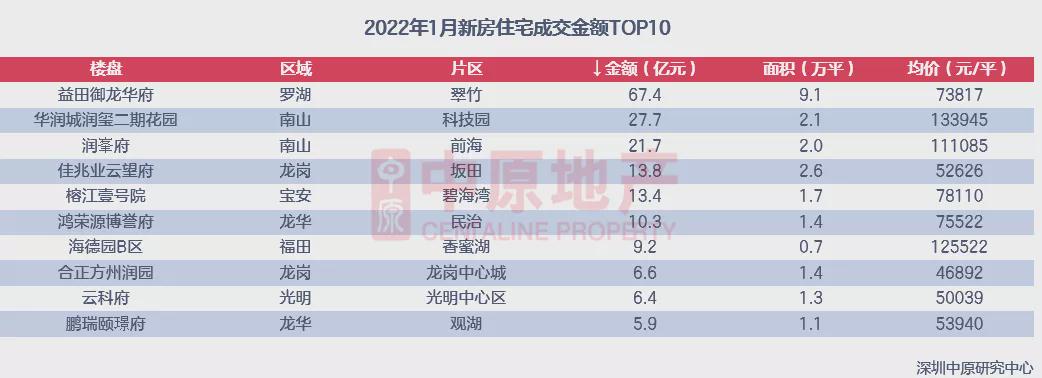 网签数据显示,1月益田集团凭借益田御龙华府项目,成交金额达到67.4亿元,获得开发商成交金额排行榜冠军,华润、电建地产分别位列二三位。