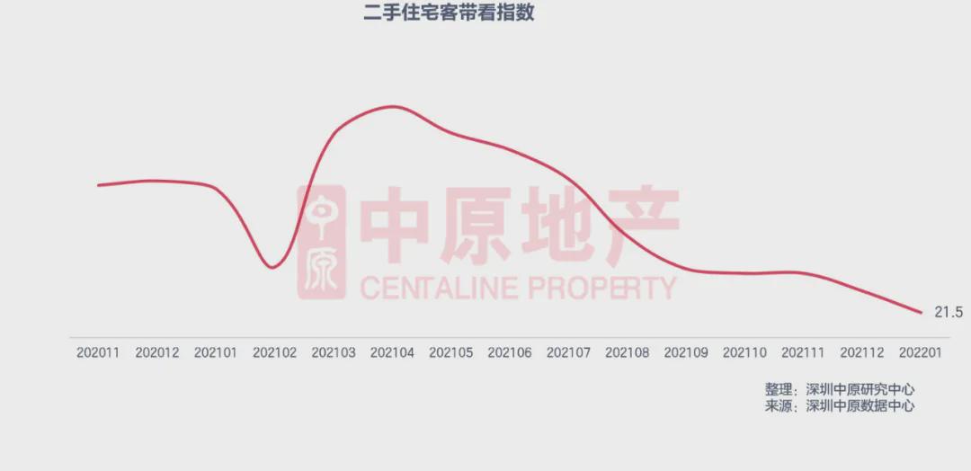 1月二手住宅客带看指数大幅下滑,从上月的40.3降至21.5。