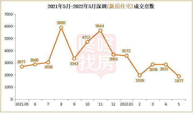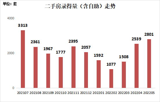 后在4月份出现明显反弹,据深房中协统计数据显示,5月全市二手房录得2,801套(以二手房买卖合同发起时间为口径统计的数据,并非最终成交过户套数),环比增长率为10.3%。