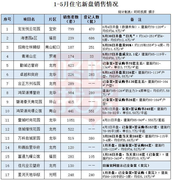 今年1-5月深圳一共32个项目拿预售,其中,住宅备案约为19个(包括深汕片区1个和安居房1个),大部分住宅项目均集中在5月份,1-4月份10个住宅项目入市,但5月份有9个住宅项目入市。
