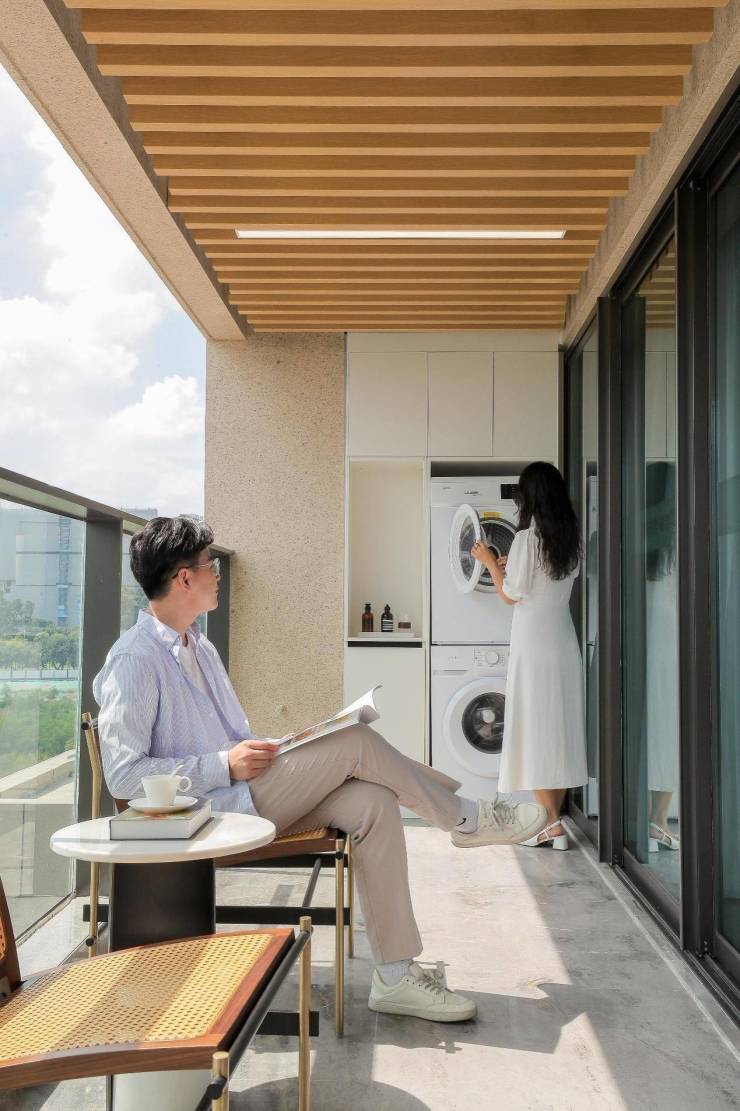 而客餐厅一体化设计,约6.9米宽景观阳台,大型通廊式阳台配置,既带来了充足的通风和阳光,也能让身处卧室的家庭成员,不经客厅走到阳台。若是购买了洗衣烘干一体的洗衣机,那就连晾衣服的空间和时间都可以节省下来,让景观阳台的核心功能“观景”更有保证。