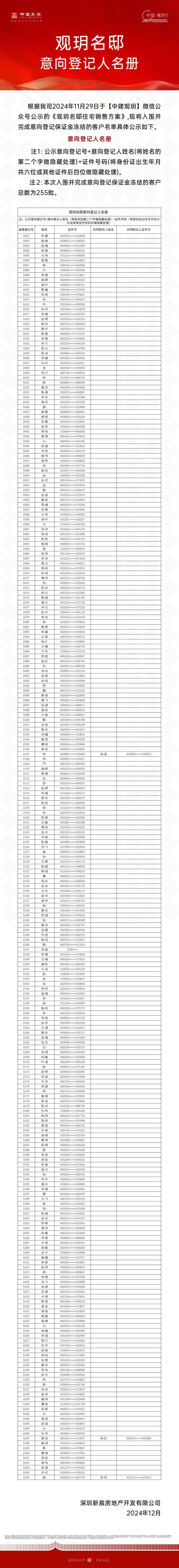 12月4日,中建观玥名邸登记人名册公示,此次共有255批客登记入围,项目将于12月5日进行选房顺序号摇号,本文将进行直播,敬请刷新查看。