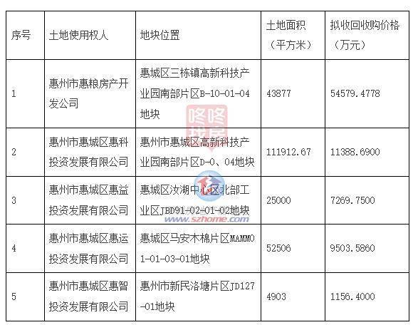 其实在春节前,1月27日,惠城区就计划对5宗用地进行回收,并发布了拟收回收购国有建设用地土地使用权的公示。