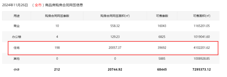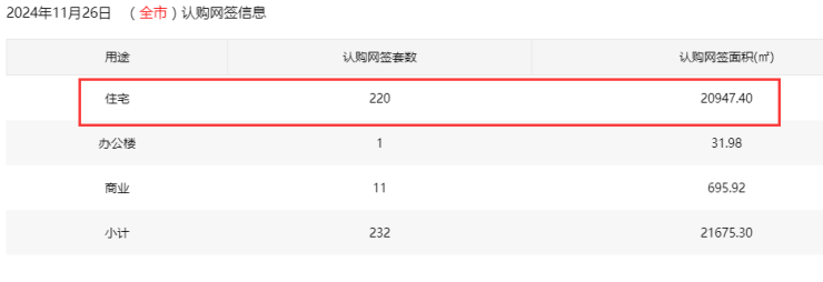 2024年11月26日新房住宅认购网签220套。其中,宝安20套;福田7套;龙岗104套;罗湖7套;南山10套;盐田0套;龙华25套;坪山16套;光明31套;大鹏0套;深汕0套。其中,宝安58套;福田11套;…