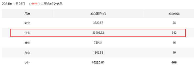 2024年11月26日二手房住宅网签342套。其中,宝安51套;福田63套;龙岗72套;罗湖39套;南山62套;盐田3套;龙华35套;坪山11套;光明4套;大鹏2套。