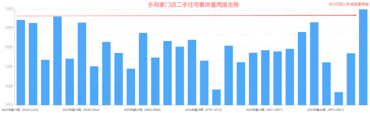 乐有家统计,上周其门店二手住宅看房量环比上涨26%,签约量环比上涨17%,周度看房量达到3月底以来的最高值,签约量也处于高位。